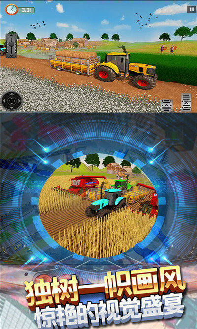农场拖拉机驾驶是一款趣味十足的模拟驾驶类游戏,玩家将驾驶拖拉机在田地里开展收割作业。收割过程中会出现各类危险物,玩家需要灵活躲避,同时还能体验到类似飙车的快感。游戏里的收割速度相当快,带来了不错的驾驶体验。玩家可以把游戏分享给更多朋友,收获的大量庄稼还能拉到市场进行交易售卖。