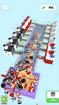 3、多样的甜点品类与精致的画面呈现,色彩绚丽的甜点搭配萌趣的工厂设计,让人仿佛沉浸在一个梦幻般的甜品天地之中。