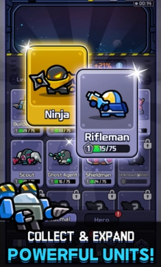 3、策略搭配游戏中的士兵兵种,各种技能可以自由解锁配合战斗