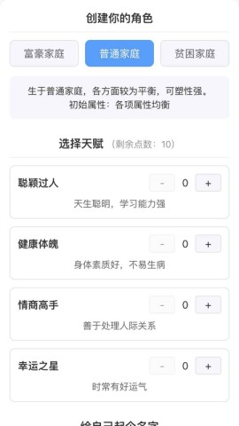 在一款以平凡人生为起点的模拟游戏里,玩家将踏入一个广阔的虚拟天地。每个人都能从最普通的角色开始,一步步创造属于自己的非凡故事。这个世界充满了各种可能性与考验,不存在既定的命运轨迹,所有的成就都源于玩家在重要节点上的每一次抉择和持续付出。