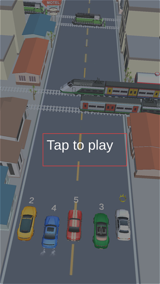 1、玩家进入游戏后,在游戏初始界面点击“Tap to play”开始游戏,随即进入出租车与火车竞赛的场景。