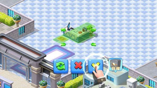 4完成确认后点击对勾图标就能完成布局设置。之后还得招聘一位接待员负责相关工作,具体操作可查看界面右上角的医护人员头像区域。