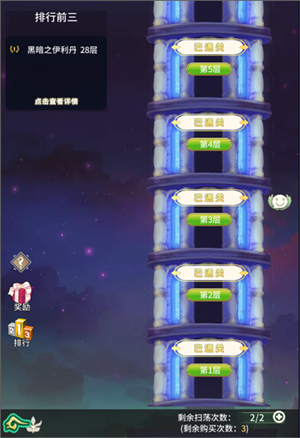 首次成功挑战龙神塔可获取进阶石作为奖励,此外,当通关层数为10的整数倍时,还能额外领取一份通关奖励。
