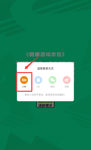 1、选择小米账号这一登录方式,点击红框所标注的MI图标进入。