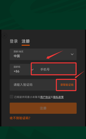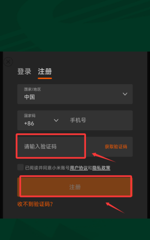 3、勾选用户协议后填写验证码,再点击橙色的注册按钮,即可完成注册流程。