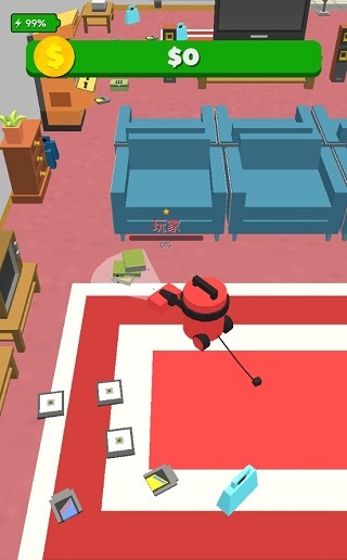 每一台不同的吸尘器都对应着一名玩家,玩家之间的相遇注定是一场无法避免的对抗——吸尘器彼此间能够相互吞噬,把比自身体积小的同类吸入体内。终结对方的同时,你自身也会快速成长,而且吞噬对手带来的成长速度远比吸入其他物品更快,这也进一步加剧了玩家之间的竞争。