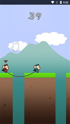 1、在游戏过程中,玩家需要操控两个角色来完成挑战——当其中一只猴子跳跃时,另一只会保持静止,玩家得巧妙地让这两只相互连接的猴子持续移动下去。