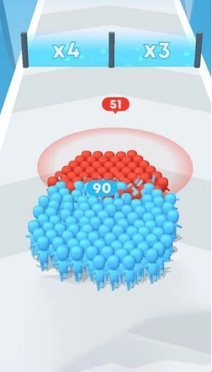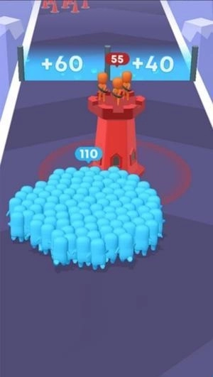 1、进入游戏后操控火柴人向前奔跑,途中会自动收集小兵来扩充队伍规模,记得要避开各类陷阱和障碍物。