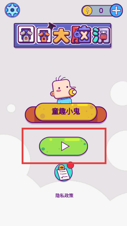 1、在囧囧大脑洞的主界面上,找到界面中间偏下区域的开始按钮,点击此按钮后,系统会自动跳转至游戏关卡选择界面。