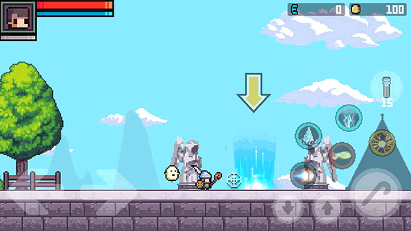 3、接着进入城镇,按照箭头的指示前往光柱所在位置,点击普通攻击按钮就能开启冒险之旅。