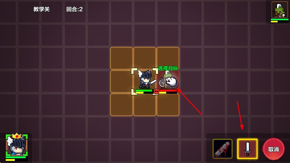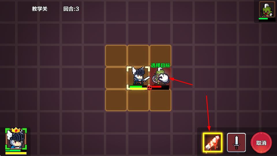 2移动结束后,点击攻击按钮,选择相邻的敌方目标,即可触发近战攻击,削减敌方的生命值。