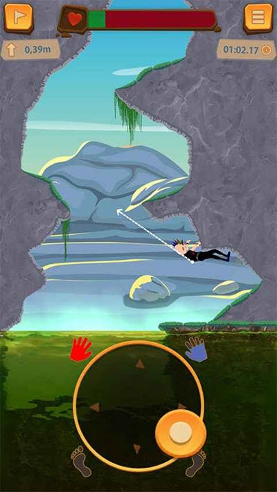 你想象中的爬山,大概是顺着台阶一步步登顶,在消耗体力、锤炼意志力的过程中,慢慢欣赏沿途的景致;但在这里,爬山会彻底颠覆你的固有认知——靠跳跃!用手或脚抓牢周围的岩壁,通过一次次跳跃攀爬向山顶进发。你得尽可能避免失误,一旦从岩壁滑落,不仅会损耗健康值,还可能导致关节受伤。
