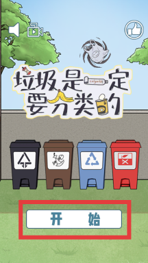 1、点击开始按钮,开启垃圾分类挑战,垃圾会随机落下,你需要快速判断它们的类别,然后投进对应的垃圾桶里。