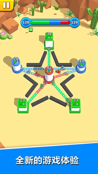 这是一款策略性的塔防类游戏,玩家将在其中挑战一系列关卡。每个关卡的场景布局都有差异,玩家需要为己方的各类作战单位规划进攻路线,目标是彻底清除敌方据点的守卫力量,从而夺取该据点并获得新的兵力补充,以便继续向其他目标发起攻势。游戏采用竖向屏幕设计,操作方式简洁直观,适合不同年龄段的玩家体验,在娱乐的同时还能锻炼策略思维能力。