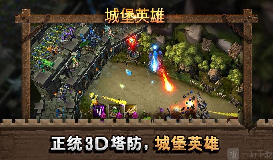 《城堡英雄》是一款塔防题材的手机游戏,其核心玩法为横版攻城模式,整体采用Q版漫画风格的美术设计。游戏内设有4个特色各异的种族,每个种族的英雄都具备独特的技能属性,玩家需结合实时战斗局势,灵活调整上阵的英雄阵容。