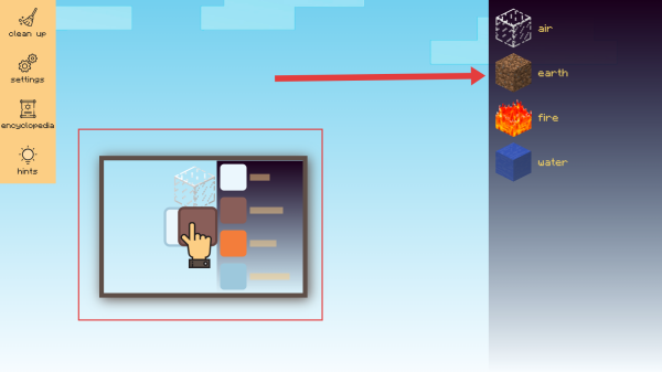 1从水、火、土、空气这四种基础元素里挑选并进行搭配,借助混合组合的方式创造出新的项目和物种,从而开启微观世界的构建旅程。