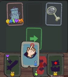 5、回收的时候要留意回收桶,它会“咬人”造成1点伤害。拿到绿色符文后,就能使用治疗卡片了。