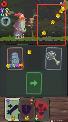 1通过收集并消耗魔法符文或金币等资源,利用卡牌来增强英雄的生存能力或对敌人施加伤害效果。