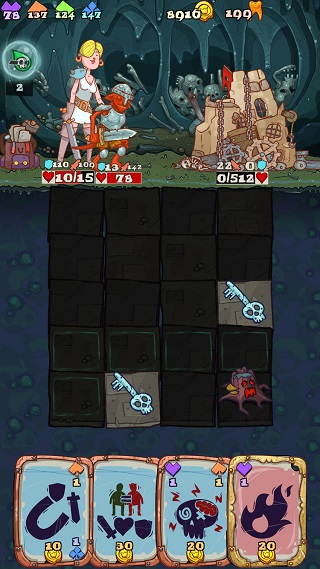 你可以从四个基础角色里挑选一位英雄,去尝试战胜地牢里的主要头目。这个角色会在他的地下冒险过程中,运用他手中的一副卡牌,而且每个角色都分别拥有一张独特的卡牌和专属技能。
