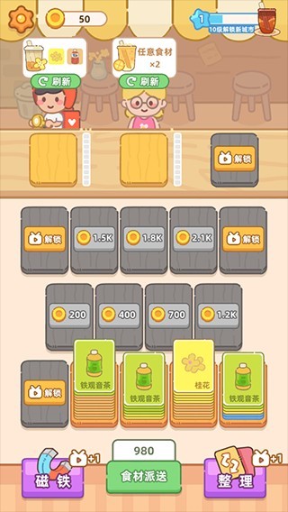 通过完成不同类型的订单需求,解锁更多食材与奶茶样式,打造出心中理想的奶茶店!
