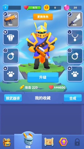 这款游戏设计了轻松的装备合成系统,玩家在主界面点击对应图标后,能通过收集各类装备来增强角色的攻击或防御能力。系统支持相同等级和品质的两件武器进行合成,从而升级为更高阶的装备,通过这种方式可以高效完成装备积累,不断提升装备等级并解锁天赋,让角色的战斗能力得到全面释放。