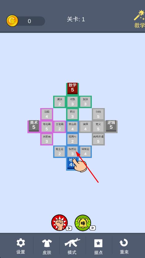 1开启游戏后,先挑选与学科相关的关卡场景。面对不同类型的对手,需要搭配对应的学科类防御建筑——比如当遇到偏向理科的敌人时,就可以用装载数学公式机制的防御塔来发起攻击。