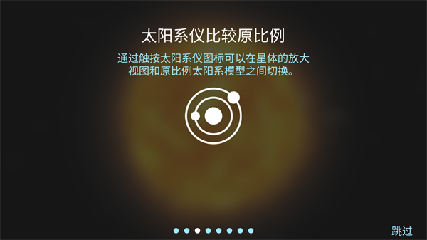 3、太阳系仪的原比例切换:点击太阳系仪图标,可在星体的放大视图与原比例太阳系模型之间进行切换。