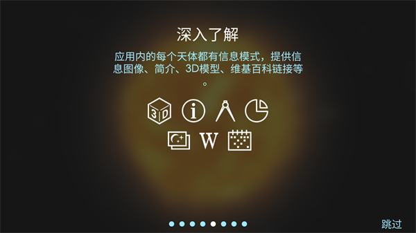 5、采用了高度精确的物理引擎,每处细节都经过科学验证,模拟真实的宇宙物理现象。1、发现:通过缩放、触按与来回滑动的操作,能够探索太阳系的每一处角落。