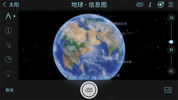 4、在这里能够对它进行360°的旋转操作,查看地球的详细信息图。