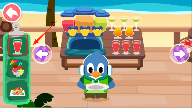 3、点击屏幕左侧你钟爱的一款饮料,小动物便会自动移动至制作区域。