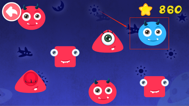 1、先从简单的分类模式入手练习,让宝宝找出颜色或形状不同的物品,系统会给予鼓励反馈,助力宝宝逐步建立分类概念。