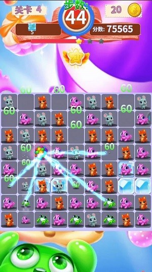 这是一款以可爱动物形象为主题的消除类闯关游戏,画面风格充满童趣。游戏包含众多不同难度的关卡,每个关卡都设置了独特的通关目标。玩家需要在限定时间内,尽可能多地消除相同图案的动物图标,消除数量越多,获得的分数也就越高。此外,消除特定的特殊图标还能触发额外奖励,比如获得可以大范围消除的道具或能改变图标颜色的特殊球,这些都能帮助玩家更高效地达成关卡目标。游戏还设有不限次数的挑战模式,等待玩家来体验。