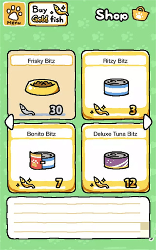 一、猫咪后院的商店:可以用银鱼干或金鱼干购买猫粮和玩具。