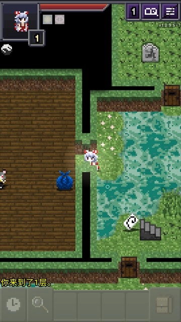 2、在像素地牢中使用酷似博丽灵梦、小兔姬、藤原妹红的角色们冒险。
