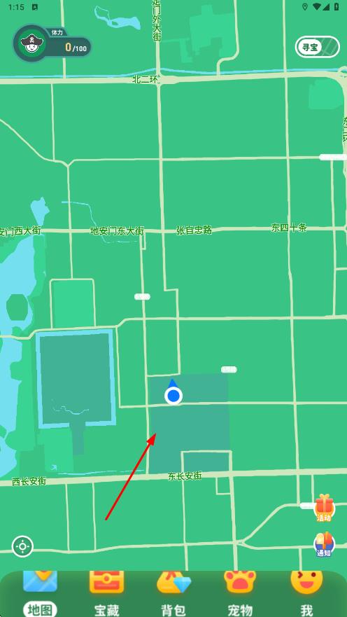 1启动游戏后进入增强现实功能,用手机摄像头捕捉周边场景以构建虚拟的寻宝路径图,再依据界面指引前往系统预判的藏宝地所在范围。