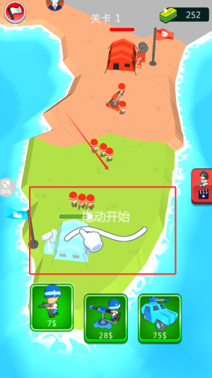 1、刚开始登上岛屿时,要迅速熟悉基础操作和地图环境,借助完成指引任务来掌握资源收集与士兵召唤的机制,使用初始武器对抗弱小敌人,以此积累金币和经验。