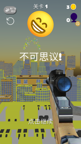 《小小神射手》是一款趣味性十足的射击游戏,玩家在游戏里将化身为一名狙击手,需要迅速定位场景中的敌人,通过精准射击来消灭所有对手。由于每个关卡的子弹数量有限,玩家得不断提高自身的射击精准度,在射击时还要预判敌人的移动路线。而每次顺利完成任务后,都能解锁全新的武器。