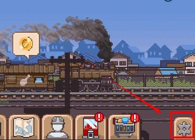 1在这个平台上完成小小铁路的安装操作,启动游戏后,找到界面右下角的齿轮形状图标并点击。