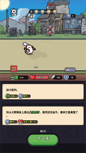 3、接着点击下一天即可推进剧情,每一天都会随机触发不一样的事件。