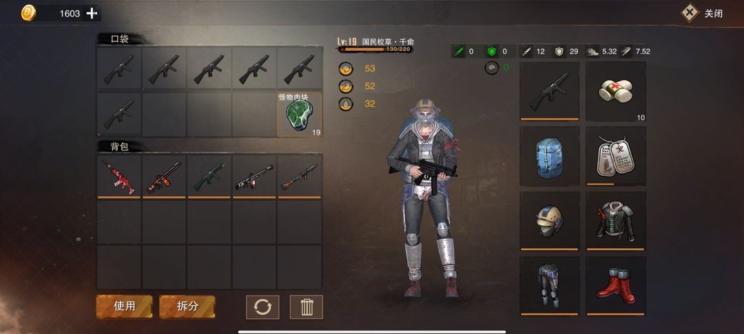 5、点击背包可查看角色信息,以及更换角色武器。