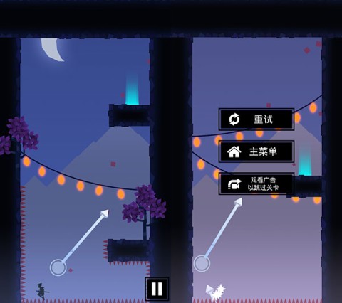 1、在屏幕上按住手指,朝着你想要忍者跳跃的方向滑动,松开手指后,忍者便会朝着该方向冲刺。