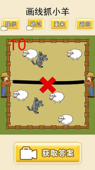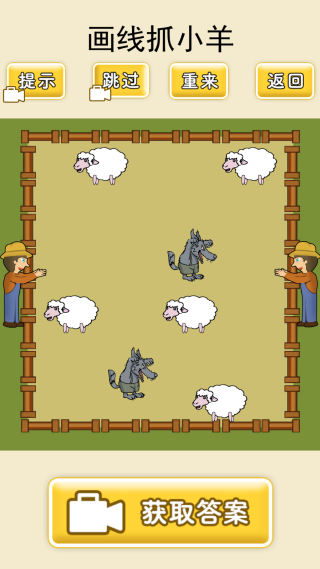3、当遭遇单只狼发起进攻时,需绘制一条从地面延伸至场景边缘的封闭防线,把狼彻底隔绝在小羊的活动区域之外,以此保证简单关卡能够稳定通关。