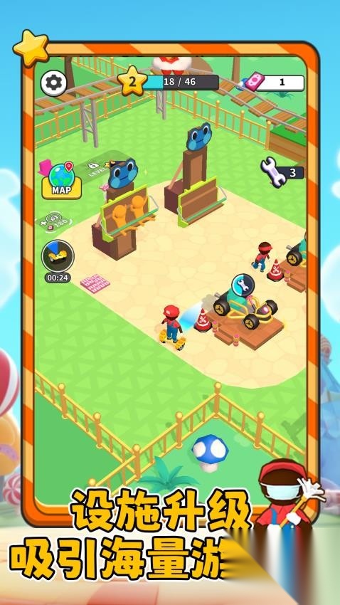 1从过山车、旋转木马到水上乐园、鬼屋,上百种游乐设施可供自由组合,帮你打造出独属于自己的特色游乐场。