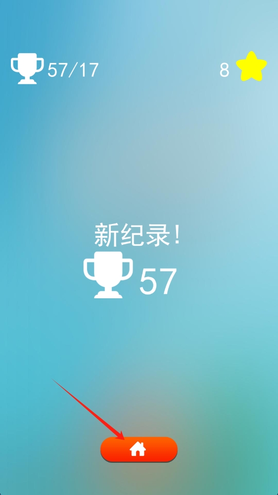 3游戏结束后,点击房子图标返回主界面,查看奖杯数量与星星数量,持续挑战新纪录,提升游戏表现。