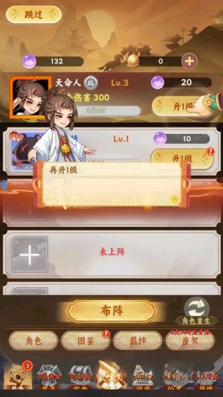 2、点击角色可查看各角色的等级上限,据此确定角色等级后,点击上阵按钮即可自由搭配组合角色阵容。