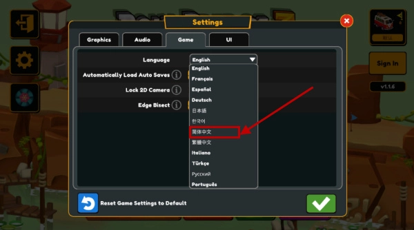 2、接着需要点击“Game”功能,然后选择下面的Language-Eeglish。