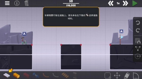 1、直接去点击左下角的按键,需要选择坚固的道路材料,这个很重要。
