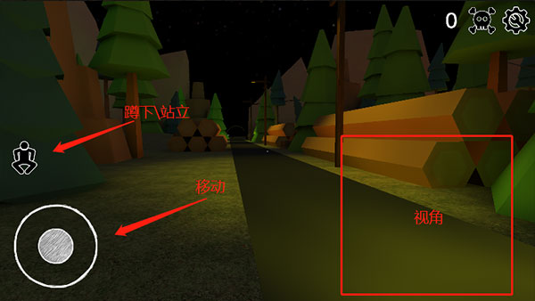 6游戏操作中,角色移动通过屏幕左侧区域控制,视角方向由右侧区域调整;左侧还设有切换蹲姿与站姿的按钮,相关状态信息在右上角展示。