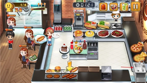 5、当食物完成后,点击成品将其送到对应的顾客手中。