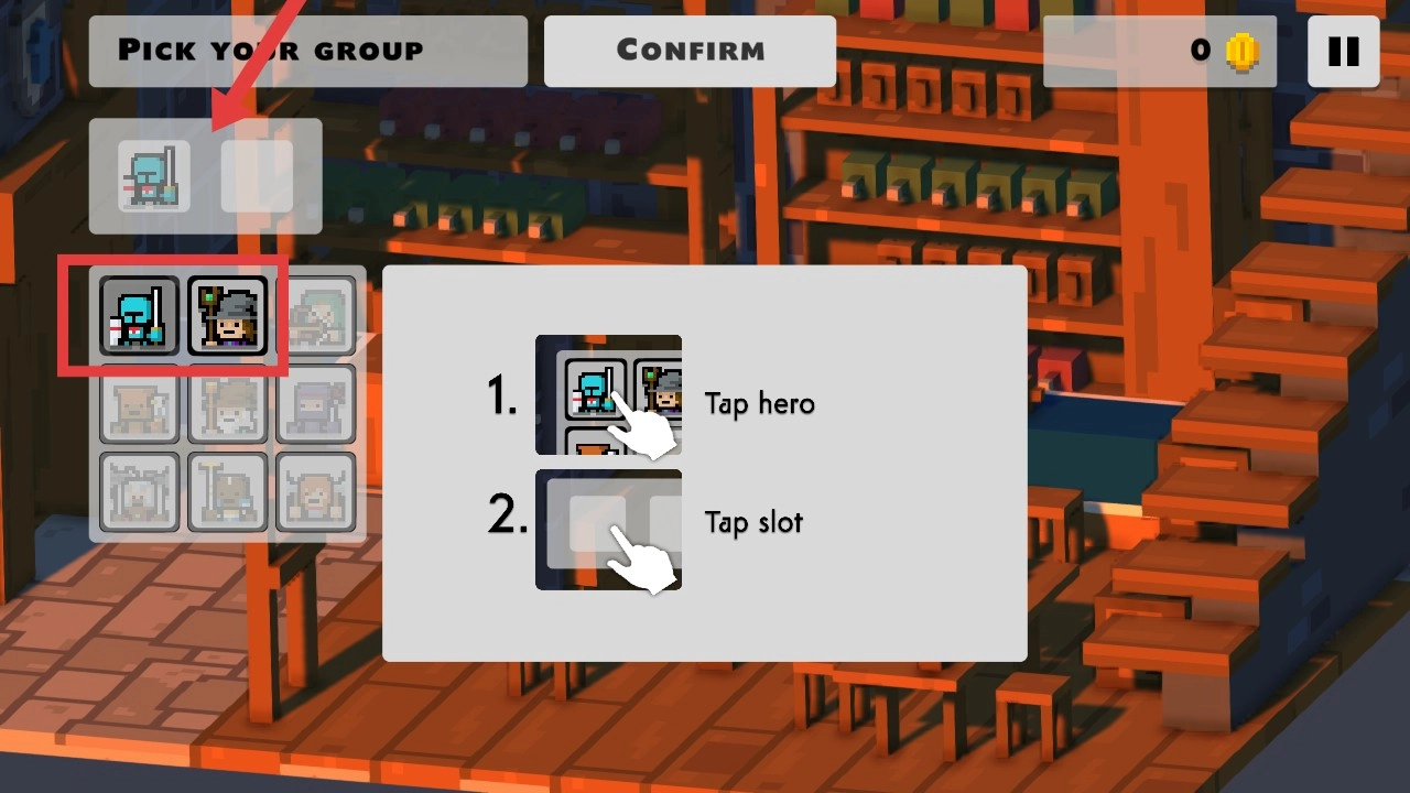 2、在【PICK-YOUR-GROUP】环节,按指引点击选择心仪的英雄角色,组建冒险队伍。